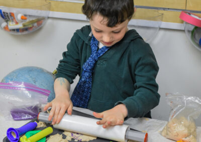 - Hands-on exploration through sensory play, art, music and movement